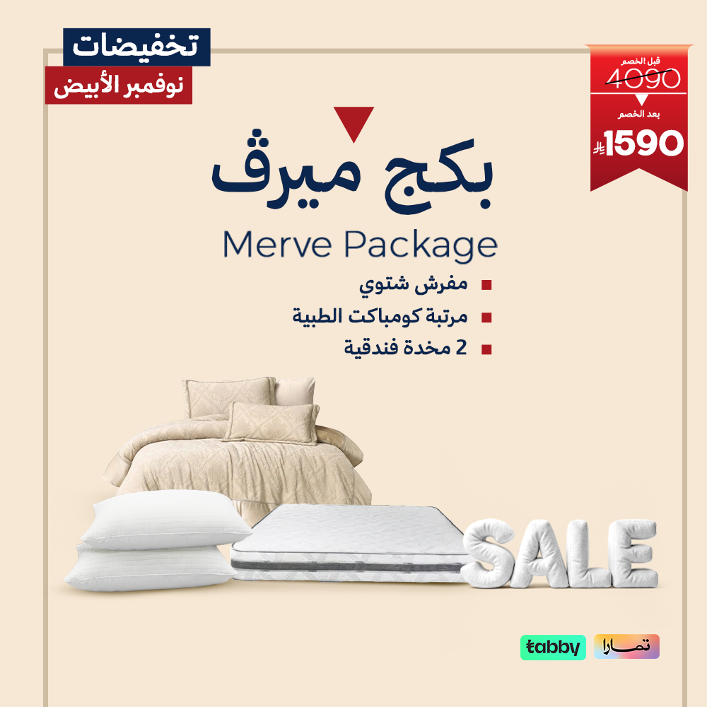 ميرڤ | MERVE  علامة متخصصة في تقديم المراتب والمفارش والمخدات بتصاميم فاخرة وجودة عالية، تجمع بين الراحة الصحية والأناقة العصرية لتمنحك تجربة نوم لا تُنسى.